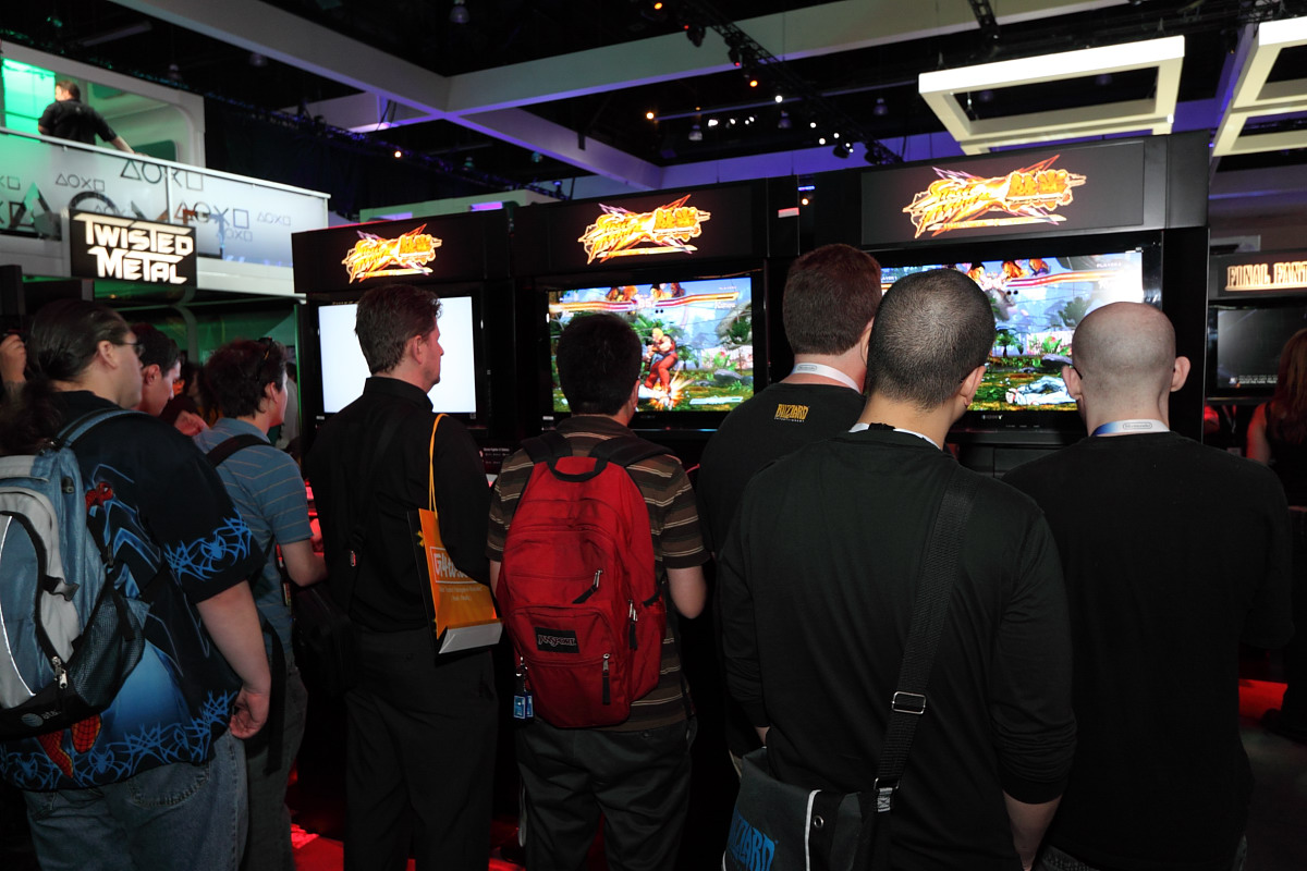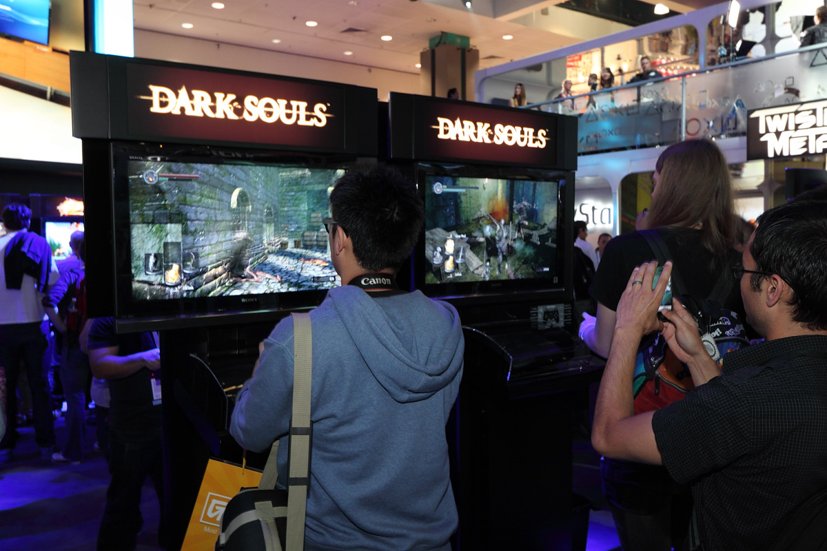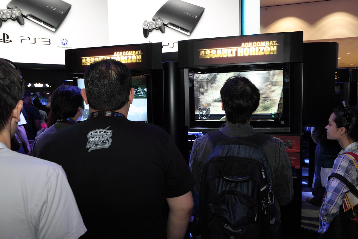 這次 SCEA 攤位的場地佈置再次沿用去年與前年的設計(任天堂與微軟其實也差不多),因此乍看之下有點缺乏新鮮感,不過展出內容當然是大不相同。攤位周圍以雙層挑高的包廂型試玩區與大螢幕圍繞,內部空間設置大量的主力遊戲試玩展示機台。