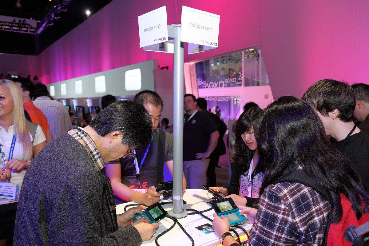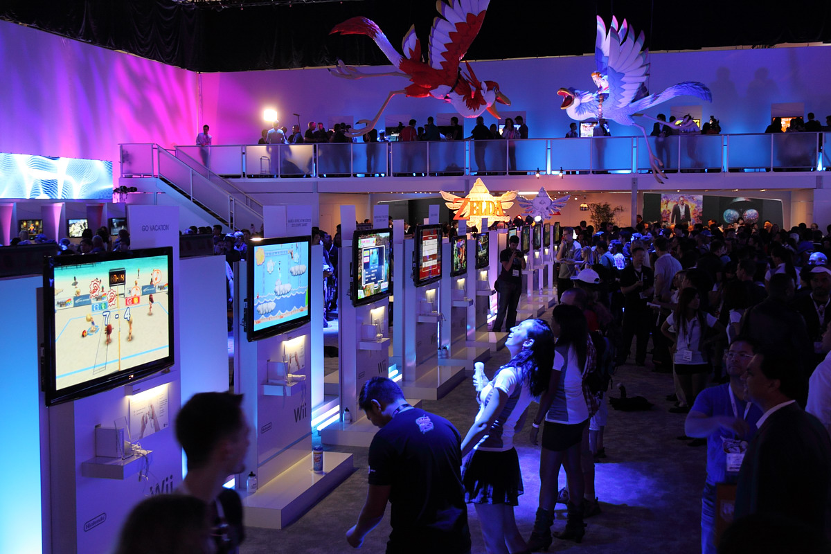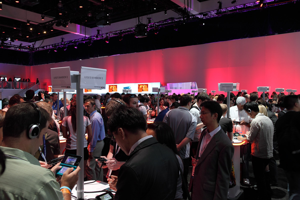 任天堂這次 E3 展照慣例還是在洛杉磯國際會議中心(LACC)西廳設置展出攤位,與對面的美國索尼電腦娛樂(SCEA)分庭抗禮,展出主力則是擺在最新發表的新款式家用主機 Wii U、結束首發後準備全力衝刺的 N3DS 以及讓玩家期待已久的《