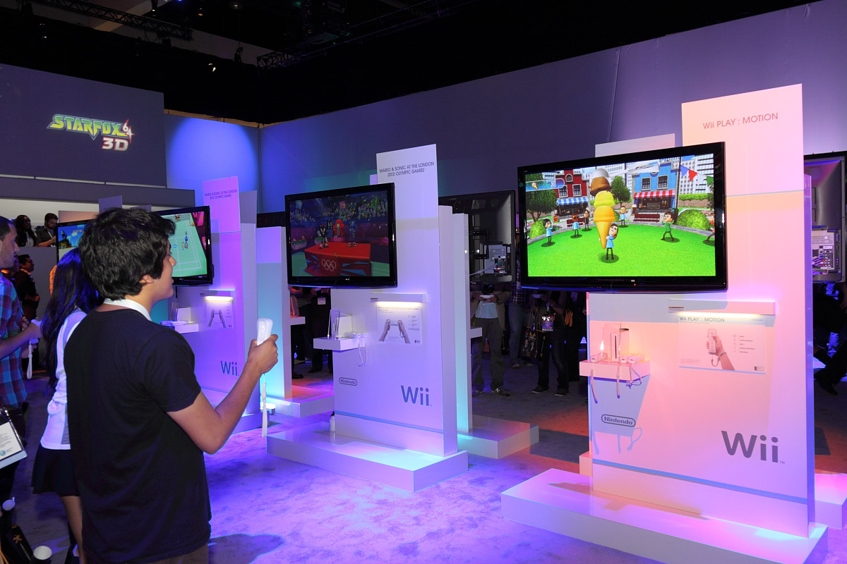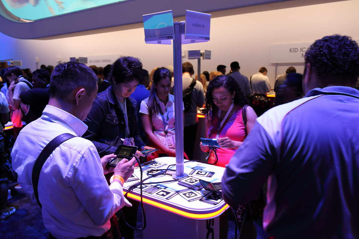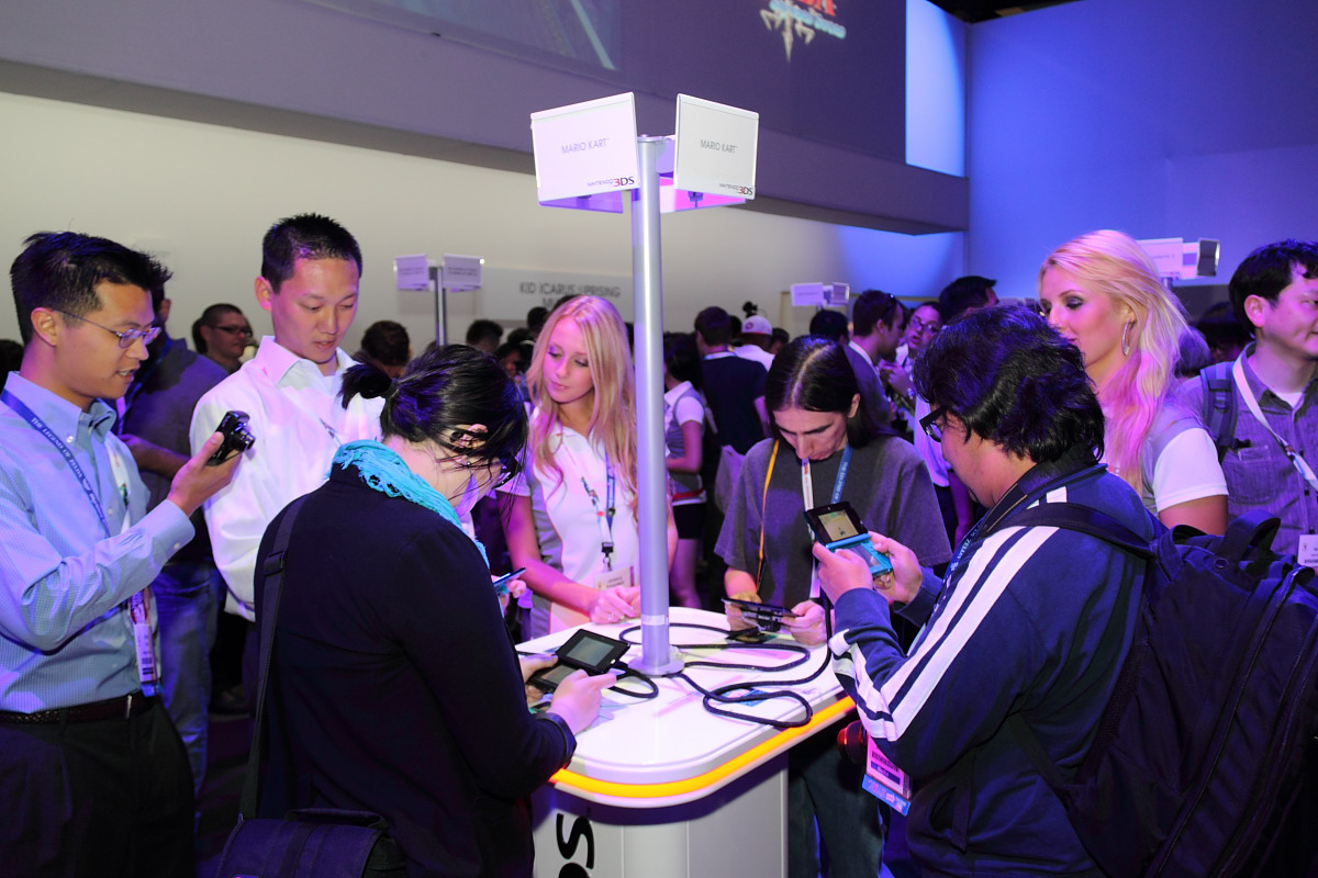 這次任天堂的展出攤位依舊承襲自 Wii 主機以來所慣用的亮白色調,以白色布幕搭建出如同白色城堡般的攤位,並搭配七彩變換的燈光展現神秘氣息。場中依照展出內容分為多個主題區域,包括左右兩排的 Wii U 試玩區、中央的 Wii 新作遊戲試玩區與後方架高的 N3DS 新作遊戲試玩區。