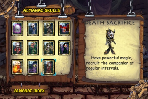 在系統方面,「骨堆系統」在骷髏死亡後會隨機產生一些骨堆,增添遊戲的難度和意外性;每關都有新道具出現,只要有足夠的金幣就可以點擊道具防禦骷髏來襲的「道具系統」;可用圖鑒調查道具威力及骷髏秘密的「圖鑒系統」。