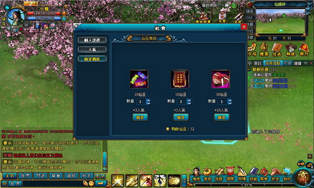 本次新增的仙豆系統是全新的人氣排行系統,只要玩家滿 35 級以上(包括 35 級),每天登錄可獲得仙豆,上線達到一定時間時也可以獲得,等級越高、可獲得的仙豆數量越多,仙豆可用於在仙豆商店中購買糖果等道具,藉由贈送其他玩家禮物來提高經驗與靈力,受贈玩家還可獲得人氣,總人氣排行前 100 名的角色,將顯示在新增的仙豆排行榜中;在人氣值達到 1000 後,可獲得永久時效的【萬人景仰】稱號,上周人氣榜排行第一的玩家,則可獲得【人氣王】的稱號,時效為 7 天,人氣王在每天第一次登入伺服器時會觸發系統公告,全服的人都可以知道你上線的消息。