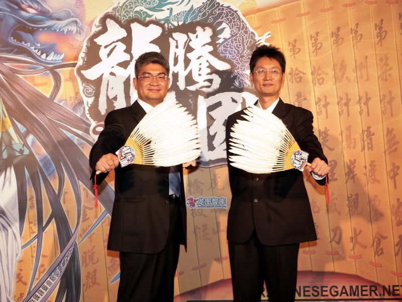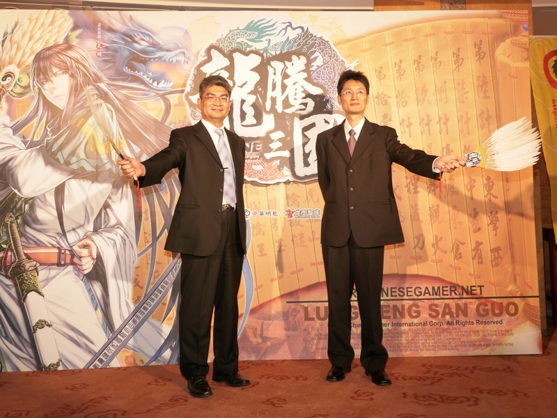 》上市記者會,由中華網龍總經理呂學森與副總經理劉裕敏人,兩人攜手揮動象徵成功的羽扇,共同宣布《