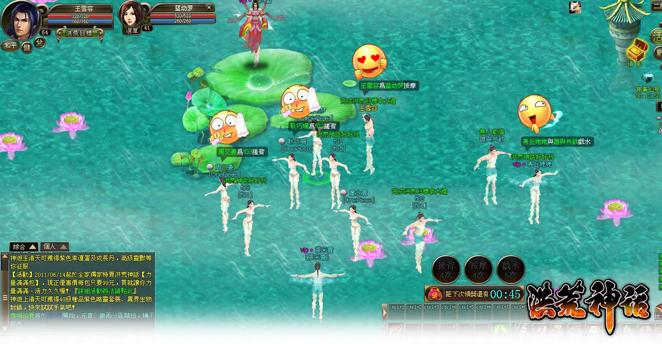 「崑崙仙泉」自即日起的每天中午 12 點到 12 點半和晚上 6 點到 6 點半開放,30 級以上玩家即可進入此地享受輕鬆的泡湯時光。在進入仙泉後除了可持續獲得經驗值,每隔一段時間,在水面上更會出現大量蓮花,玩家可藉由搶奪這些蓮花來獲得豐富的經驗值。官方表示,在仙泉裡亦可與其他角色做些如搓背、按摩和戲水等有趣的互動。