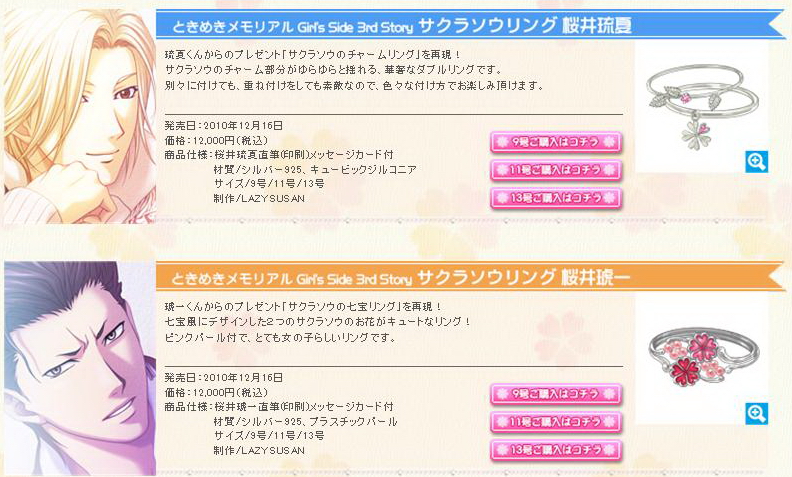 純愛手札 Girl's Side 3rd Story》飾品特設網站中,遊戲 6 位登場男孩桜井琉夏、桜井琥一、不二山嵐、新名旬平、紺野玉緒、設楽聖司,要展現給喜愛他的女孩愛的飾品,除了已經上市的戒指外,還有可愛的項鍊與手鐲等。