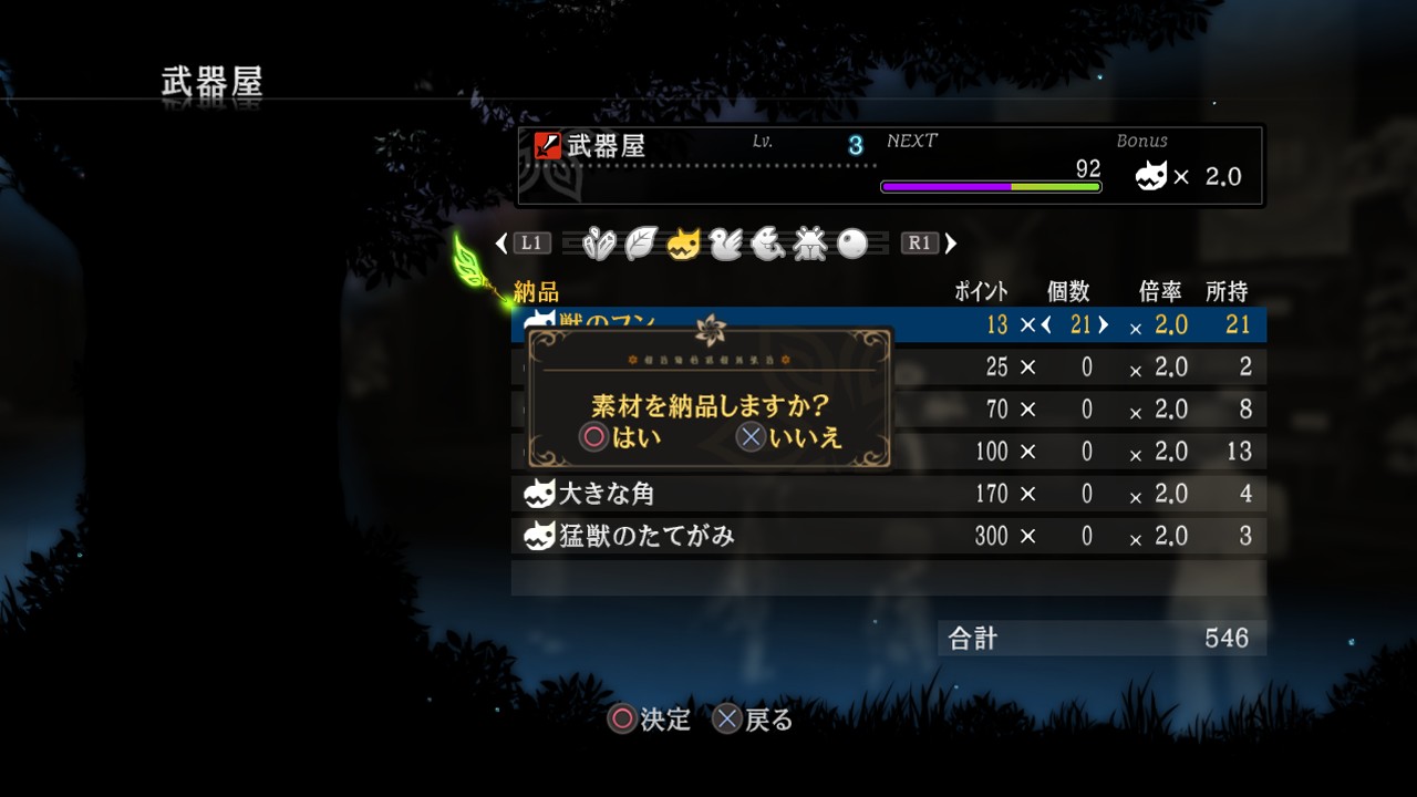 | 可選擇捐獻素材道具或金錢 | 每種素材道具換得的成長點數不一 |