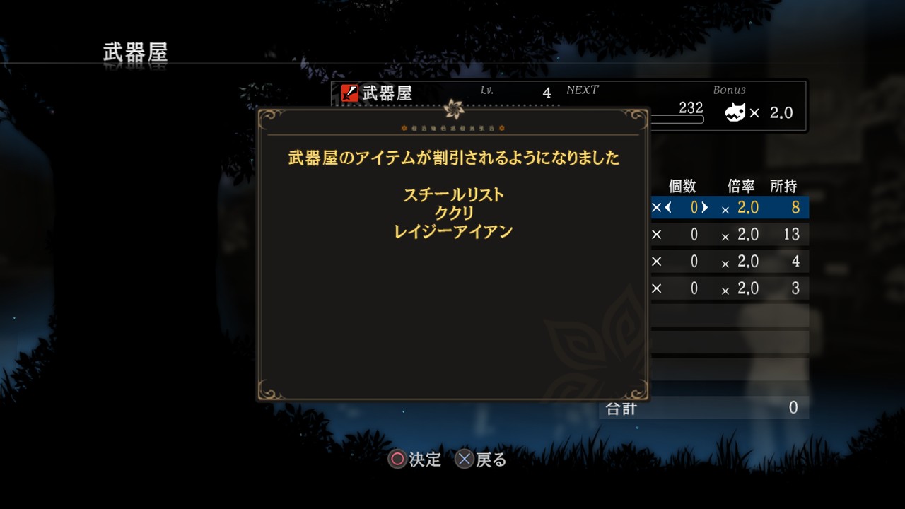 | 未升級的商店販賣的商品數量不多 | 高等級商店可以買到更物美價廉的商品 |