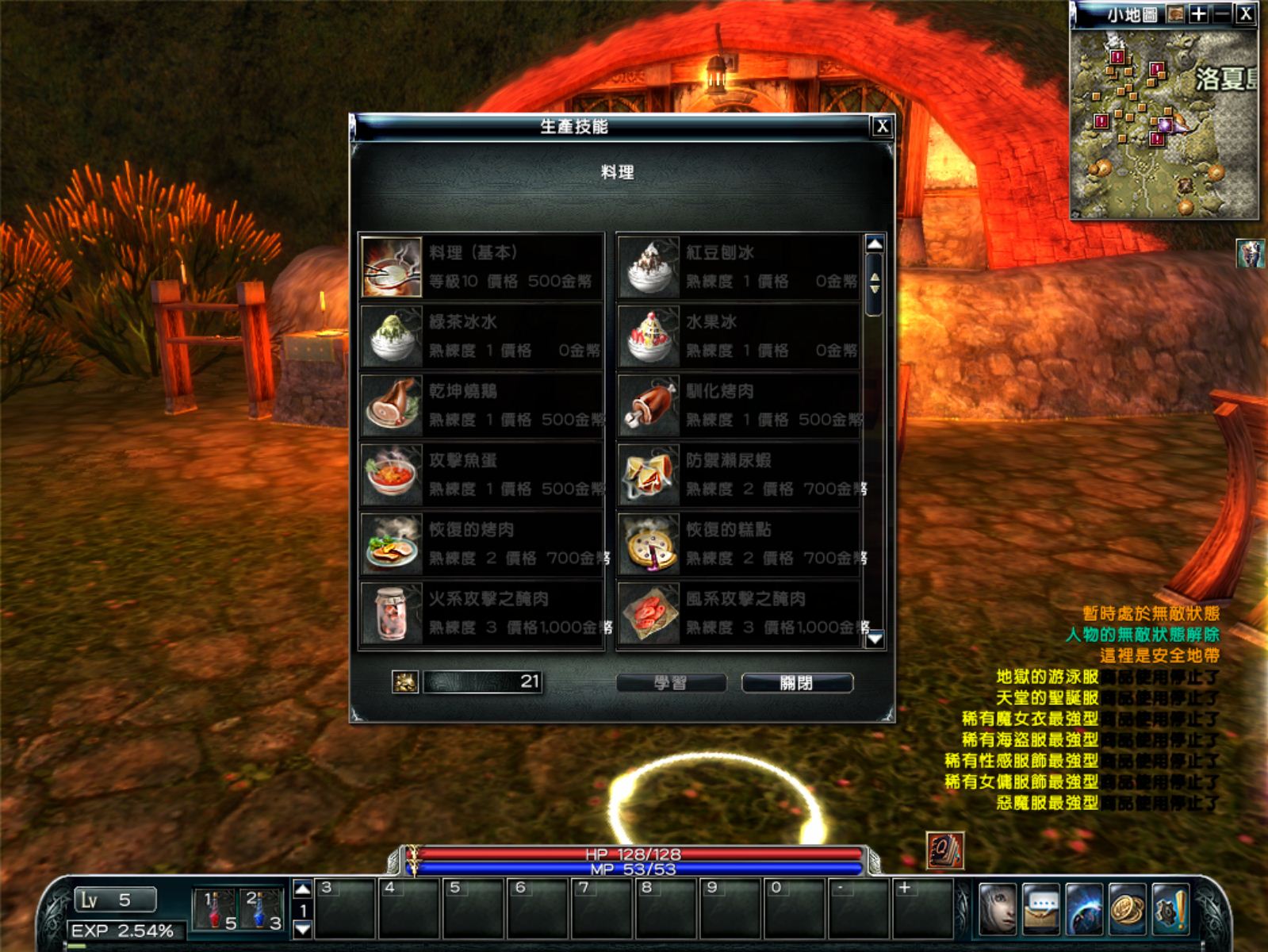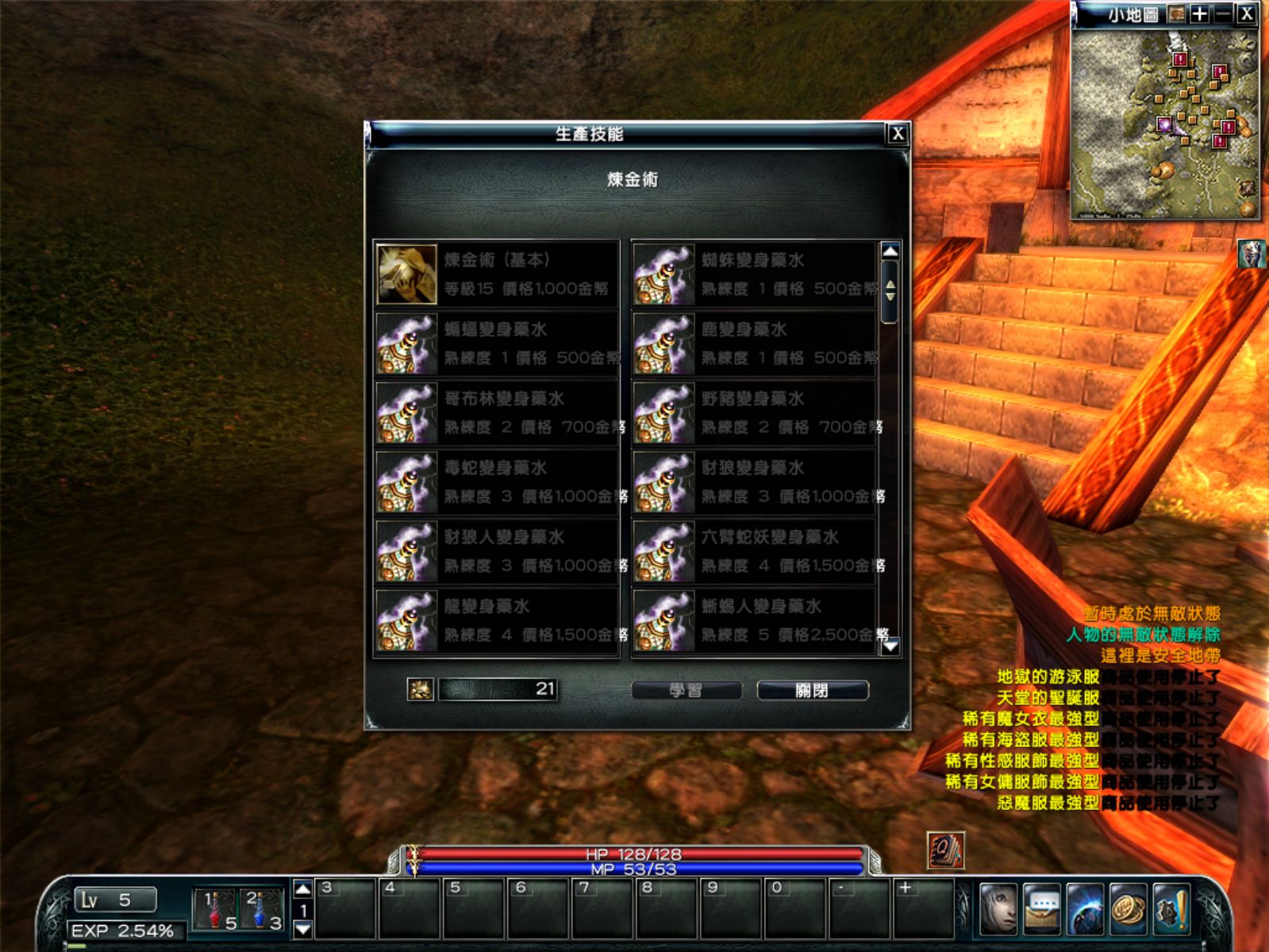 玩家角色達到 10 級之後,就可透過廚師 NPC 學習「料理」技能,所需要的道具爲「烹飪工具」。至於「煉金術」的部分,則必須等到玩家角色達到 15 級之後,才可由各地的煉金術士 NPC 處學習「煉金術」技能,煉金術可以製作出各種能變身成怪物外觀的變身藥水。