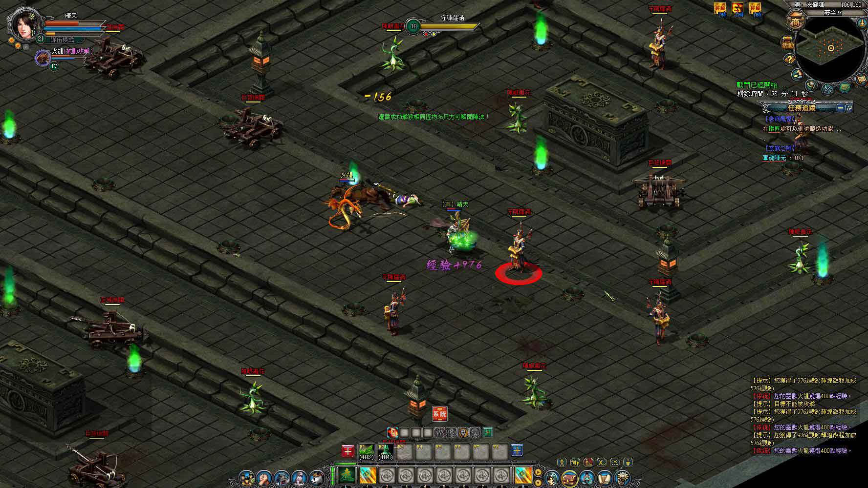 玩家升到 20 級之後,不管是皇城或是榮陽都有許多主線和支線任務可以解,20 級之後會開始接觸到副本任務。20 級的副本是「玄襄陣」,只要跟皇城內的 NPC 陳元對話就可以進入副本,在進入副本前,小編還是建議玩家組隊進行,因為副本內的怪物不僅數量龐大,而且血量和攻擊力也比野外地圖上的怪物還要高出許多。除了組隊以外,還要記得多帶一點治療生命和補充法力的道具,才足以攻破副本。