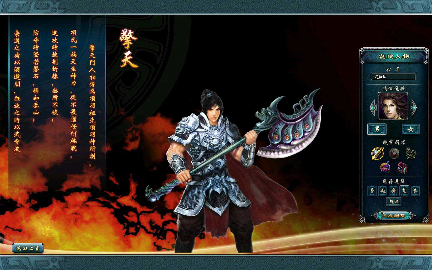 擎天:相傳城璞之戰的晉國名將先軫和長平之戰的秦國名將白起便是擎天門人。擎天的定位為戰士坦克類型,天賦可分為破軍、狂戰與守衛。