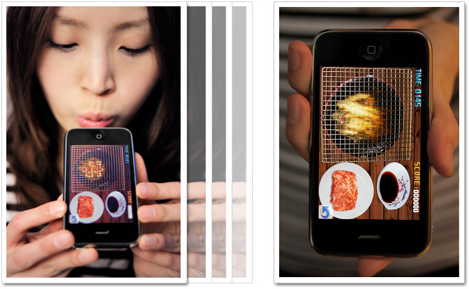 iBBQ—日式燒烤王》,讓玩家體驗無煙無臭的真實燒肉快感。充分利用了 iPhone 既有的特殊功能,讓遊戲更加有趣,玩法更多變化。如原本只能一片一片點擊翻面的肉片,利用 iPhone 感應的功能,只要像翻鍋一樣前後搖動手上的 iPhone,便可將烤盤上的食材全部一起翻面。嫌食材太難烤想要將火力加強時,只要對著麥克風的位置輕輕吹上一口氣,便能將大火熊熊吹起。