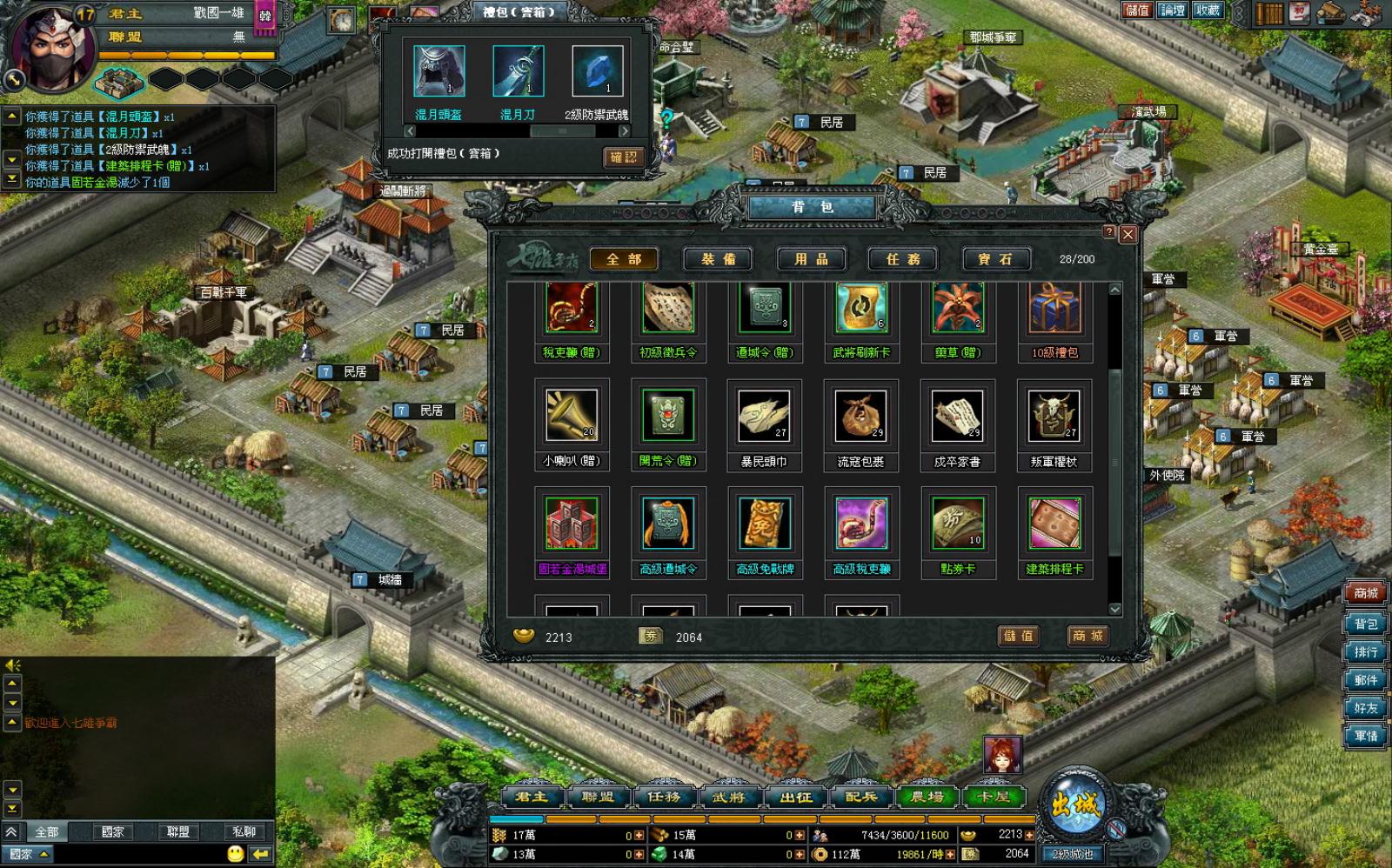 七雄爭霸》創建角色後第二天,將會收到來自官方首次發出的神秘強力的『固若金湯』禮包一份,該禮包內含有專為新手準備的獨門九大道具包含了【高級遷城令】、【高級稅吏鞭】、【高級免戰令】、【建築排程卡】等眾多豪禮,幫助新手迅速建立防禦優勢、資源優勢、攻擊優勢、發展優勢、進階優勢等五大優勢,以X2的速度快速擺脫新手期的煩惱,以X2的步伐快速跨入強勢君主的行列,早日爭雄天下!