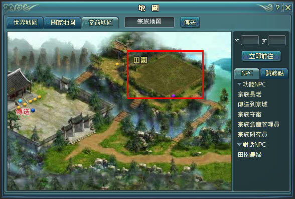 宗族運鏢:加入宗族的其他玩家每天可接 1 次宗族拉鏢任務,族長或者副族長可召集 25 級以上的宗族成員接受宗族拉鏢任務,完成宗族運鏢之後,將獲得豐富的經驗獎勵,參加人數越多獲得獎勵越高。需要注意的是押送鏢車的過程中,所有參與運鏢的玩家必須緊隨鏢車,如果有人遠離鏢車或中途掉線,鏢車就會停在原地,當玩家無法回到鏢車附近時,族長可將其踢出隊伍,繼續押送鏢車。