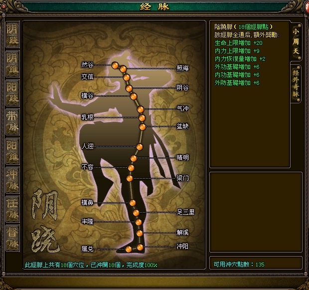| 打通的小周天經脈能增加基本屬性 |