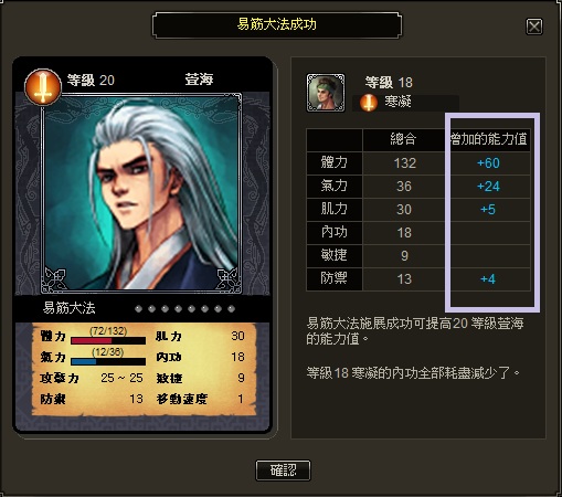 天劍英雄傳》內建易經大法,玩家能自行挑選等級較低的武將,將其體力,內功、敏捷等素質傳輸給等級較高的武將,藉此集中提升單一武將個人素質,成為日後主力武將,節省訓練時間。