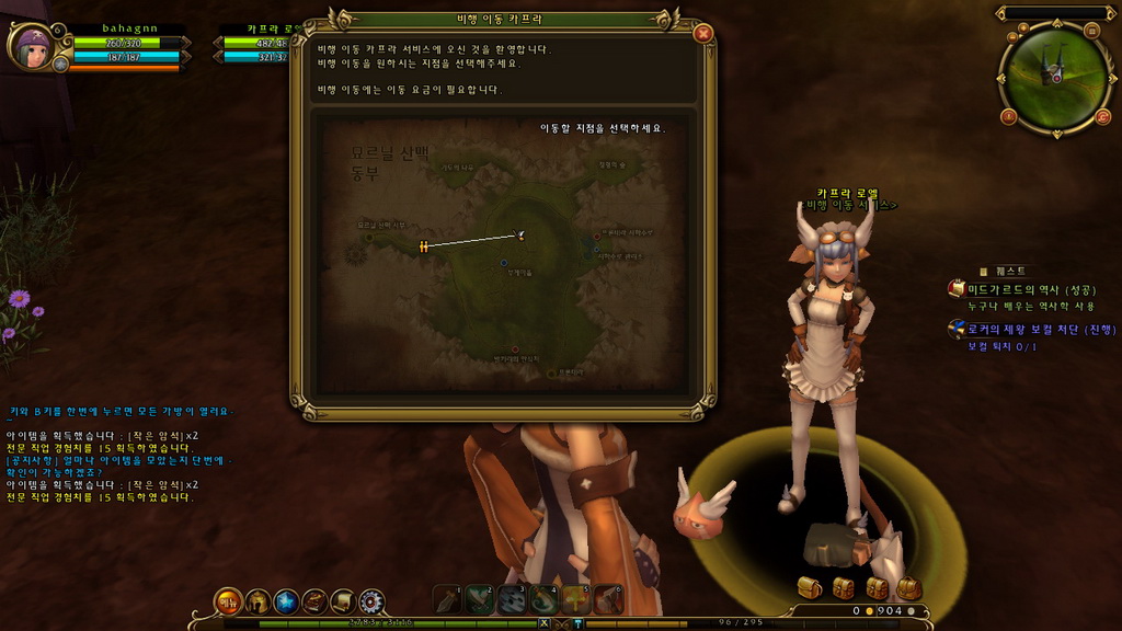 當一路持續往前冒險,可能會遇到地圖太大跑不完的窘境,這時可以找找飛行卡普拉 NPC 來協助我們吧!只要選擇指定位置並付出少許金錢,飛行卡普拉就會用掃把帶著我們飛抵該處,大大減少角色徒步行走的時間。