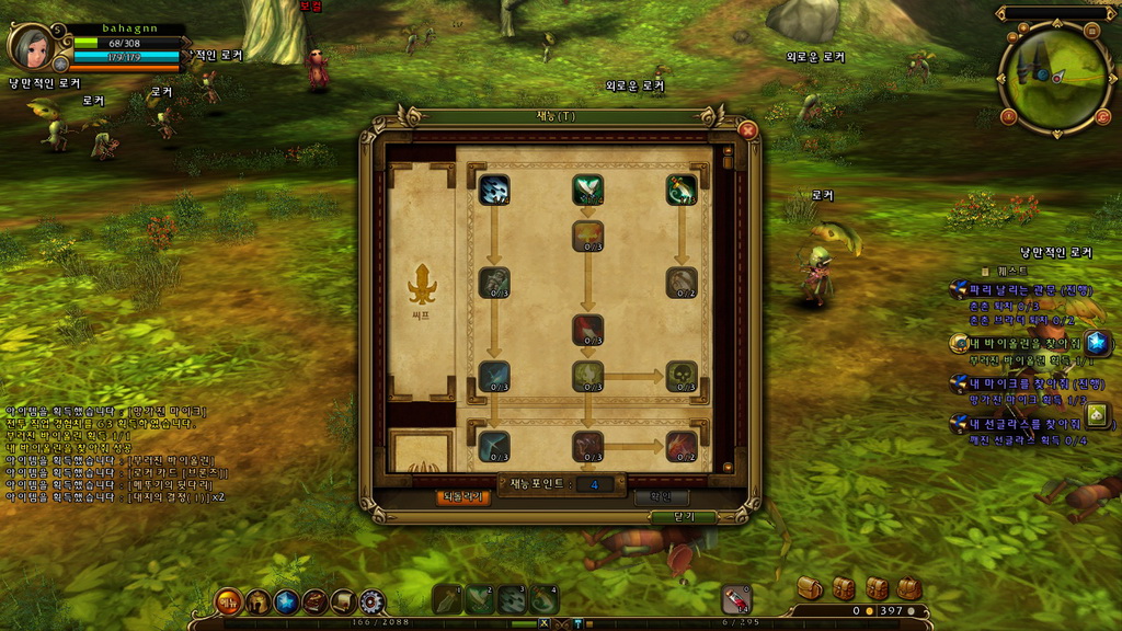 只要按照任務要求與小提示的輔助說明,就能順利提升等級並前往新地圖冒險。角色升級時,我們將會得到 1 點技能點數,可點取右側提示或按 T 鍵打開技能分配欄,進行技能配點,分配好後再按 K 鍵拖曳至快捷欄使用。