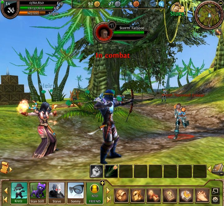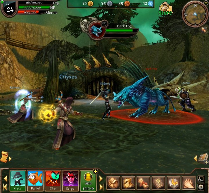 進入遊戲後,主視窗下方會有簡單操作說明,選擇四大種族之一跟角色職業之後,就可以確認伺服器進入。玩家要透過解任務和打怪來提升等級,一邊收集武器、資源、裝備等道具,然後單人或是組隊擊殺怪物。而 Facebook 版本的重點主要讓玩家更容易找到朋友一起組隊練功,甚至還能透過 Facebook 特有的社群互動功能,靠朋友幫忙蒐集資源。
