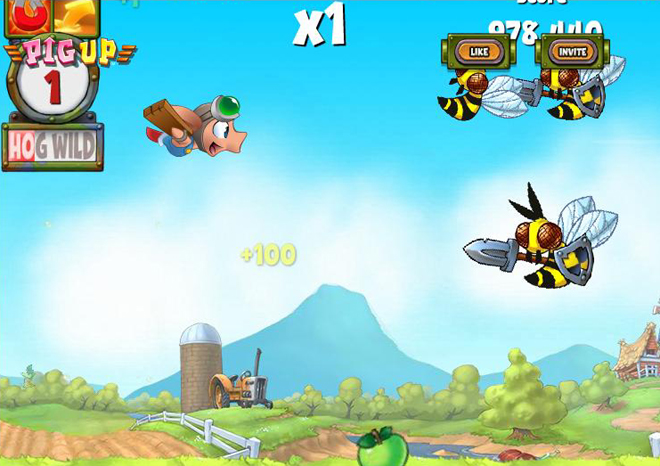 Pig Up!)》遊戲,是由知名遊戲開發商及發行商的「POPCAP」所推出。玩家在遊戲裡扮演的是一隻貪吃的飛天豬,必須一邊躲避蜜蜂的攻擊,一邊吃掉所有的水果。