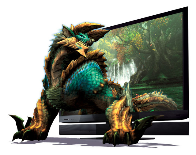 | 《魔物獵人 攜帶版 3rd 高解析度版》與 Sony Bravia 液晶電視合作概念圖 |