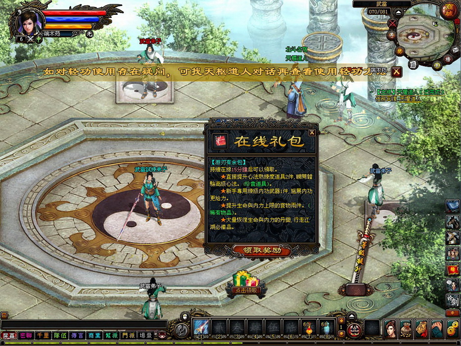 遊戲的過程只要持續在線達到一定時間,角色就可以獲得不同的新手大禮包,裡頭所贈送藥水、經驗道具有助於新手練功,並可在任務過程中,獲得一套實用的基本裝備。