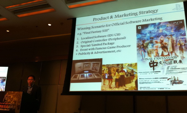 Final Fantasy XIII》的中文版就相當受到亞洲玩家的歡迎。而除了將遊戲內容中文化之外,他表示在 PSP 上發表,由樂陞科技開發的「台灣數位內容合作研發中心計畫」首部作品《