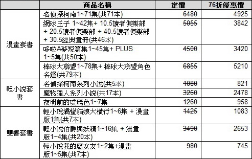 棒球大聯盟全套79本(含角色大圖鑑)等多種精選套書通通讓你用76折起帶回家。