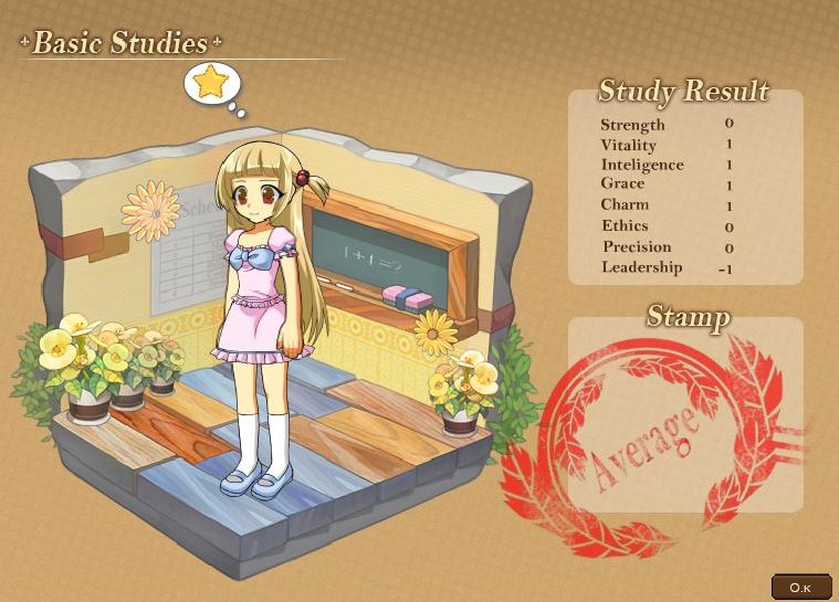 在這款遊戲中,玩家必須透過各種職業工作來賺取學習課程的資金,或是佈置美少女的小屋。職業工作的選擇有木匠、廚師、研究員、畫家、歌手、裁縫師、講師等,而學習的課程則有劍術、藝術、禮儀、舞蹈、魔術、宗教、說話、武術、語言、科學、音樂、社交、廚藝等。