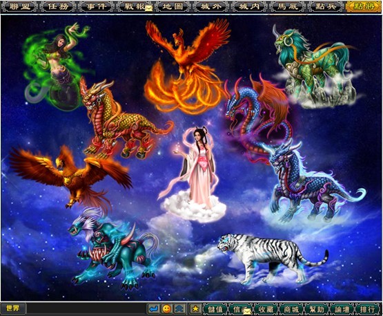 在“神獸時代”中,每位君主都有一個召喚獸的星系空間,在那裡玩家可以培養 10 隻召喚獸,神獸在戰鬥中一旦被召喚出來,會對一大片軍隊造成強大的群體效果。