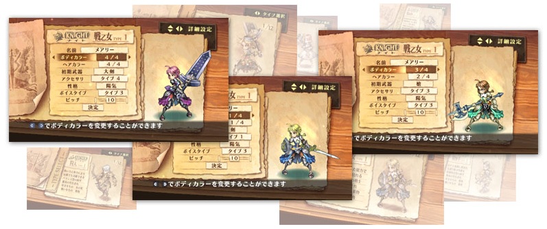 並且全部有三種職業,九種類型可供玩家轉職。可以自由設定調整能力、個性、武器、外表和聲音等等豐富項目。並且聚集各種團員,組成獨一無二的騎士團。