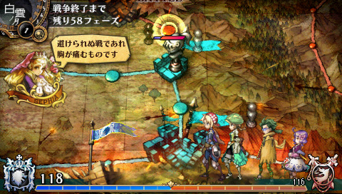 網路戰況會隨著時間推移即時改變,在數日間一個戰區的戰鬥就會邁向終結,而下場戰區會根據玩家的投票決定。出擊時要操作 4 人一組的騎士團參戰,根據戰鬥結果「前線區塊」會推移,3 大國家之間的勢力版圖會變化。時間不夠的玩家也可以利用「自動進軍」設定 AI 上線參戰。