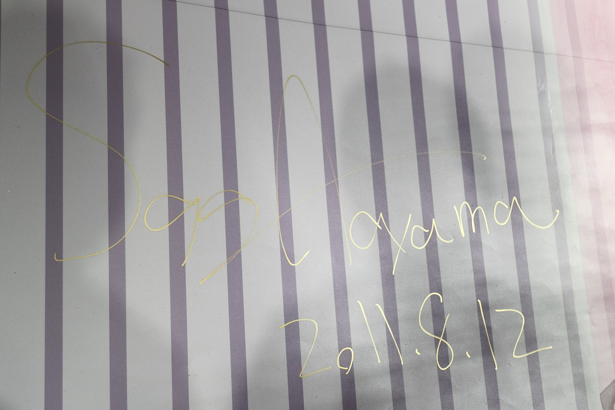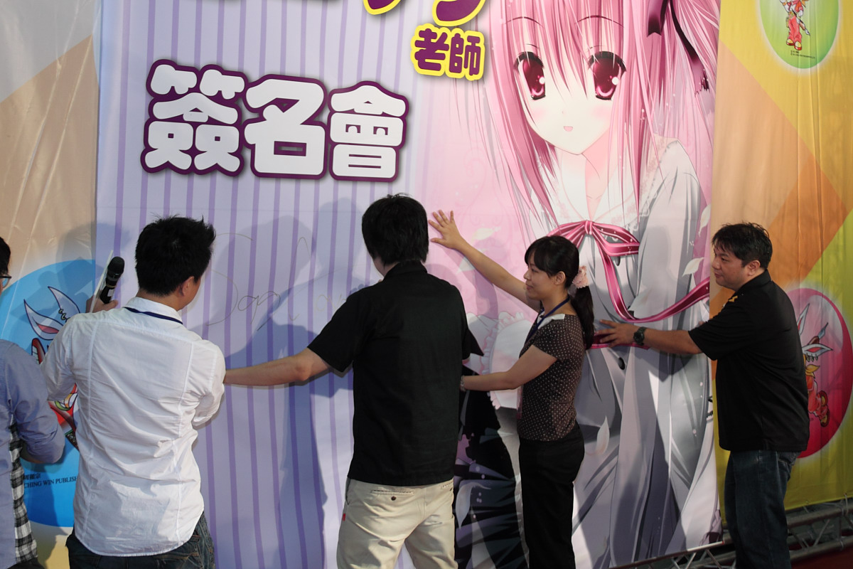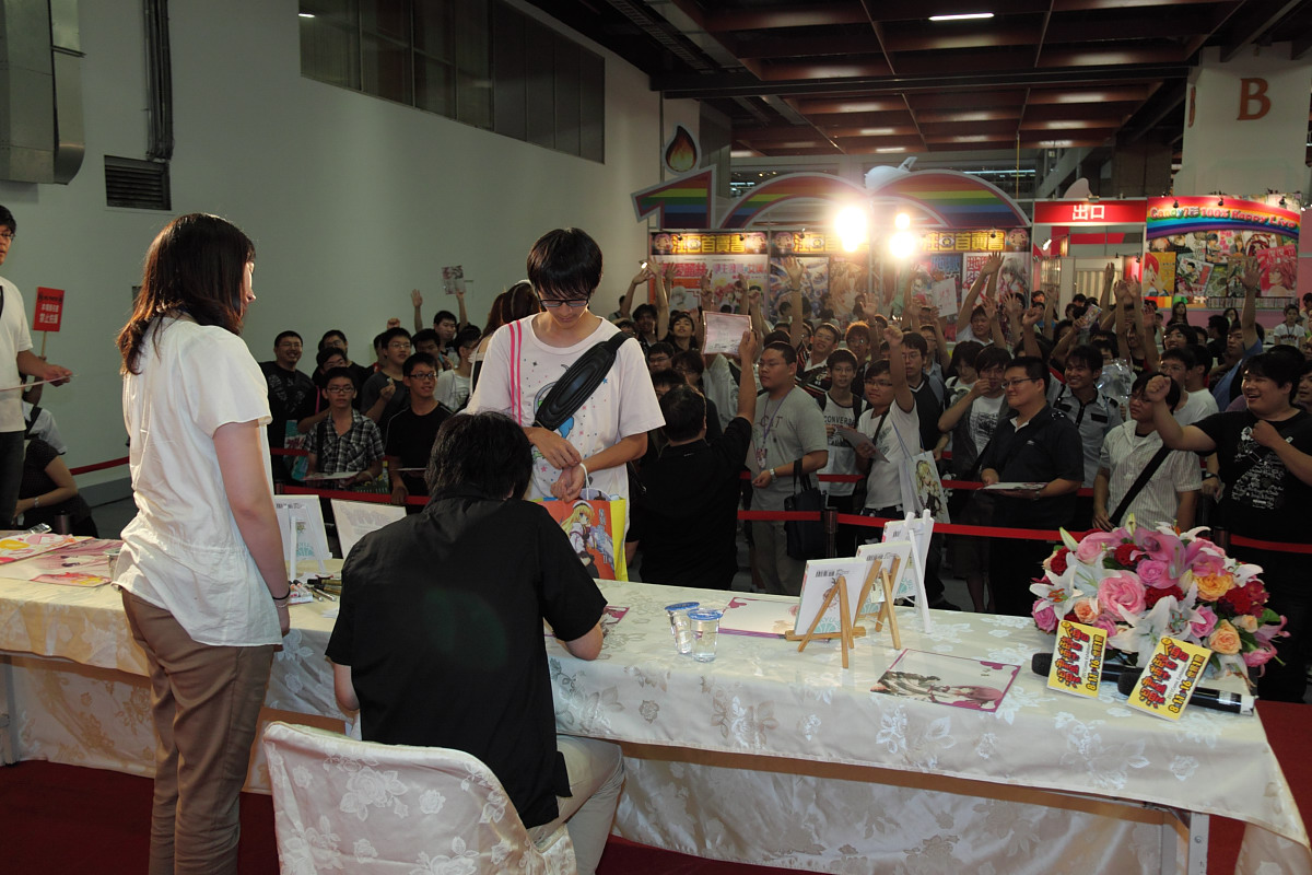 簽名會的最後,主持人還特別加碼,請蒼山サグ在場佈用超巨大掛報上簽名,當成壓軸大獎送給現場讀者,立刻引來一陣熱烈回應,最後幸運得獎的讀者表示就算要他扛著走路回家也甘願。