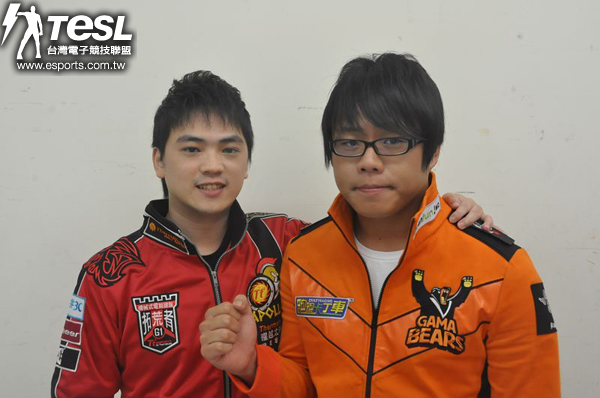 | 「台灣蟲王」 Sen(楊家正,右)首場在TeSL台灣職業電競出賽,就與親堂叔Apro(楊爵鴻,左)對戰 |