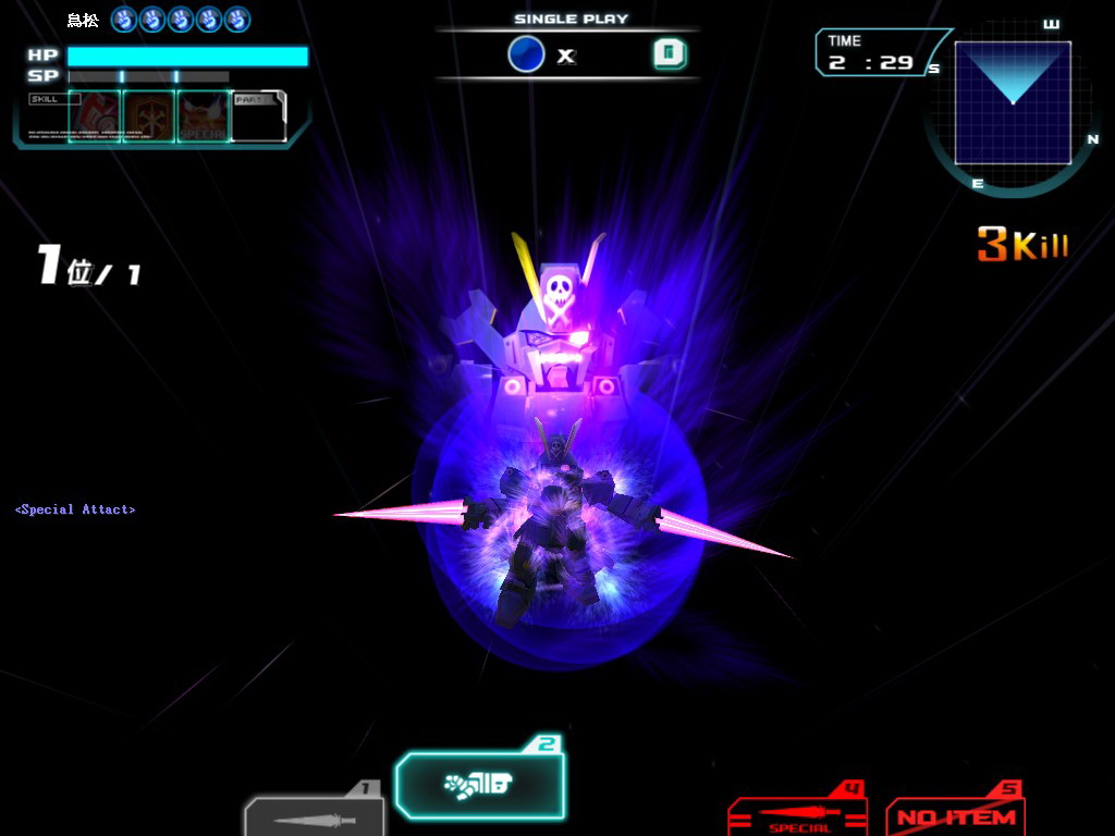| 全新開放56號扭彈機A級機體「加萊佐(紫色機)」手指彈出光束軍刀,可近距離給予對手致命一擊! |