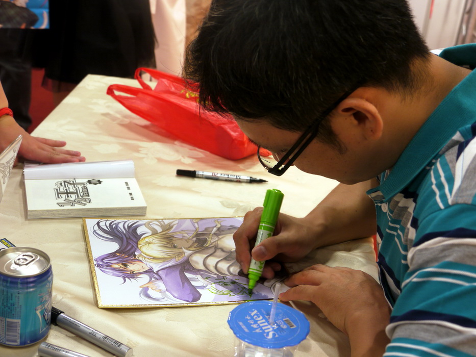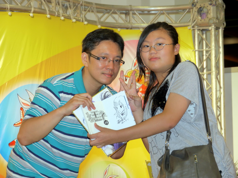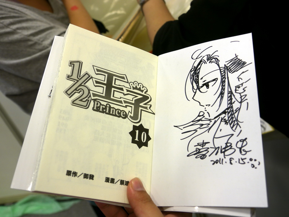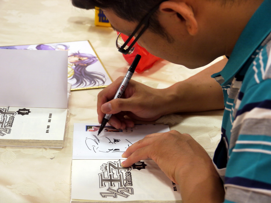 蔡鴻忠老師非常貼心地為粉絲在簽名板與漫畫封面內頁中簽名,還畫上圖案,讓粉絲大呼值得,下台後還彼此觀看、拍照老師所繪製的不同角色。