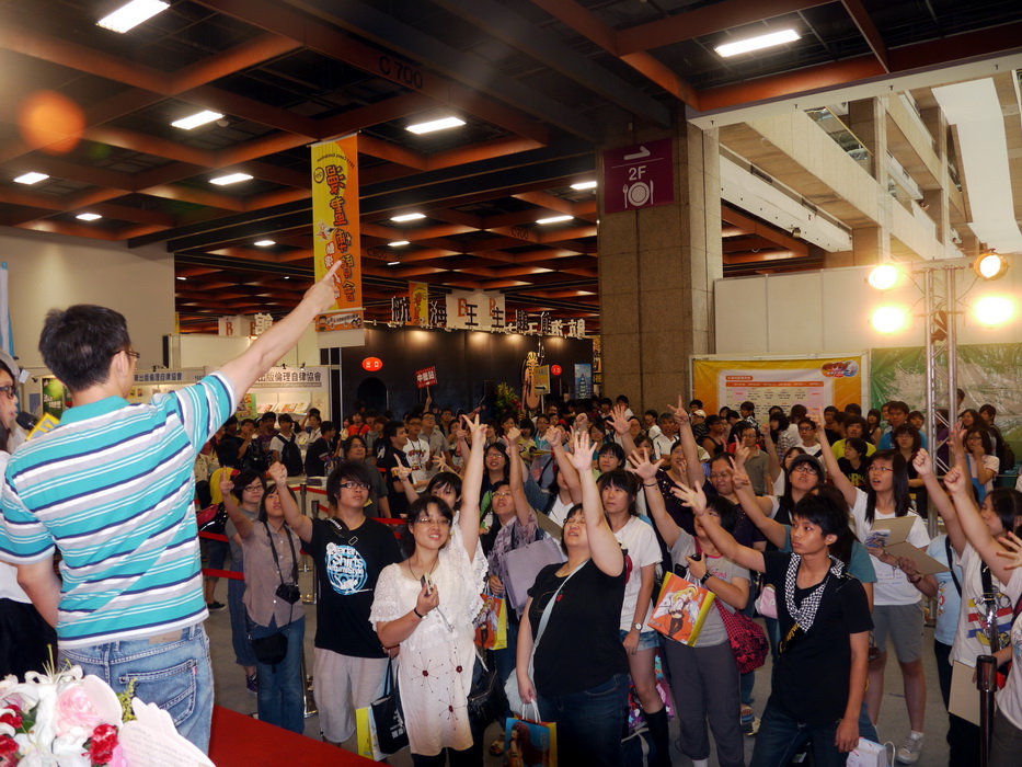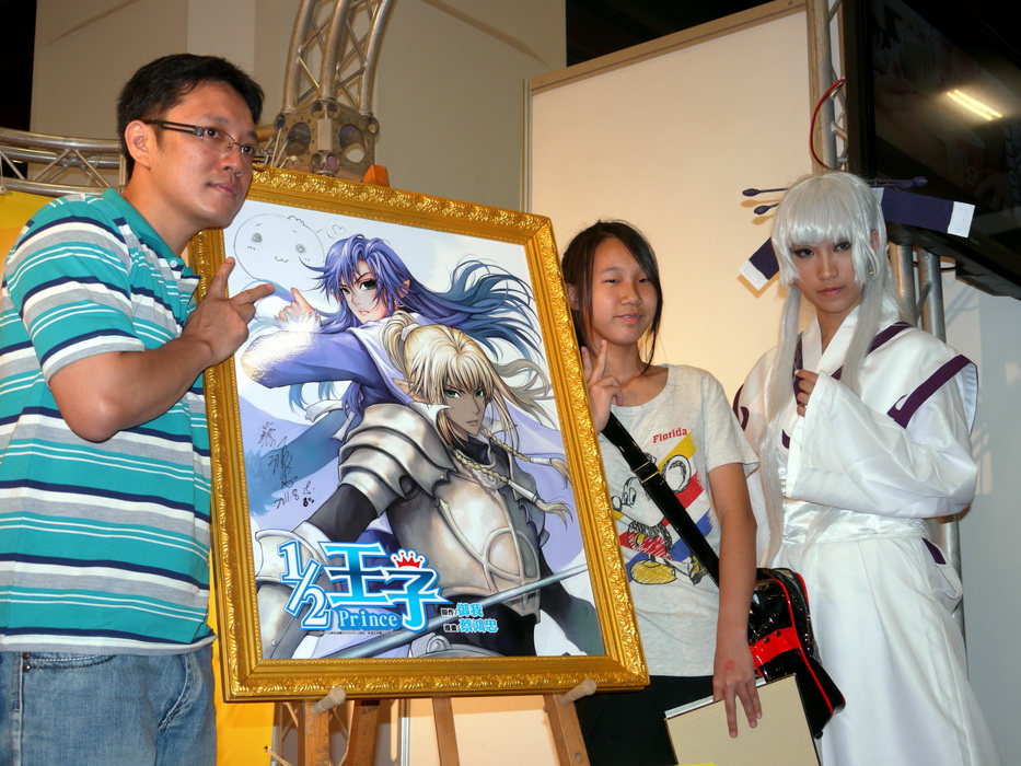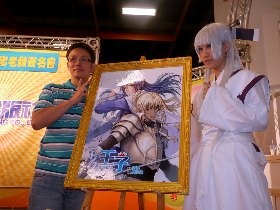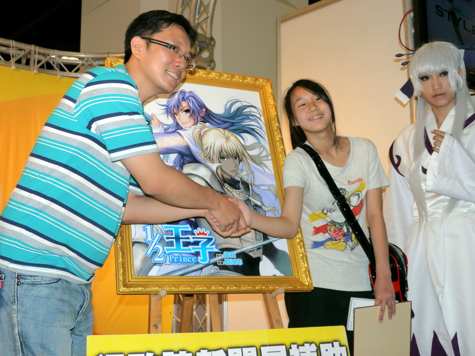 1/2 王子》大型海報給台下粉絲,蔡鴻忠老師先在海報上繪製角色與簽名,然後決定以玩猜拳的方式,來選出最後優勝者,而經過一番激烈地猜拳競爭後,由幸運的女性漫迷把海報帶回家。