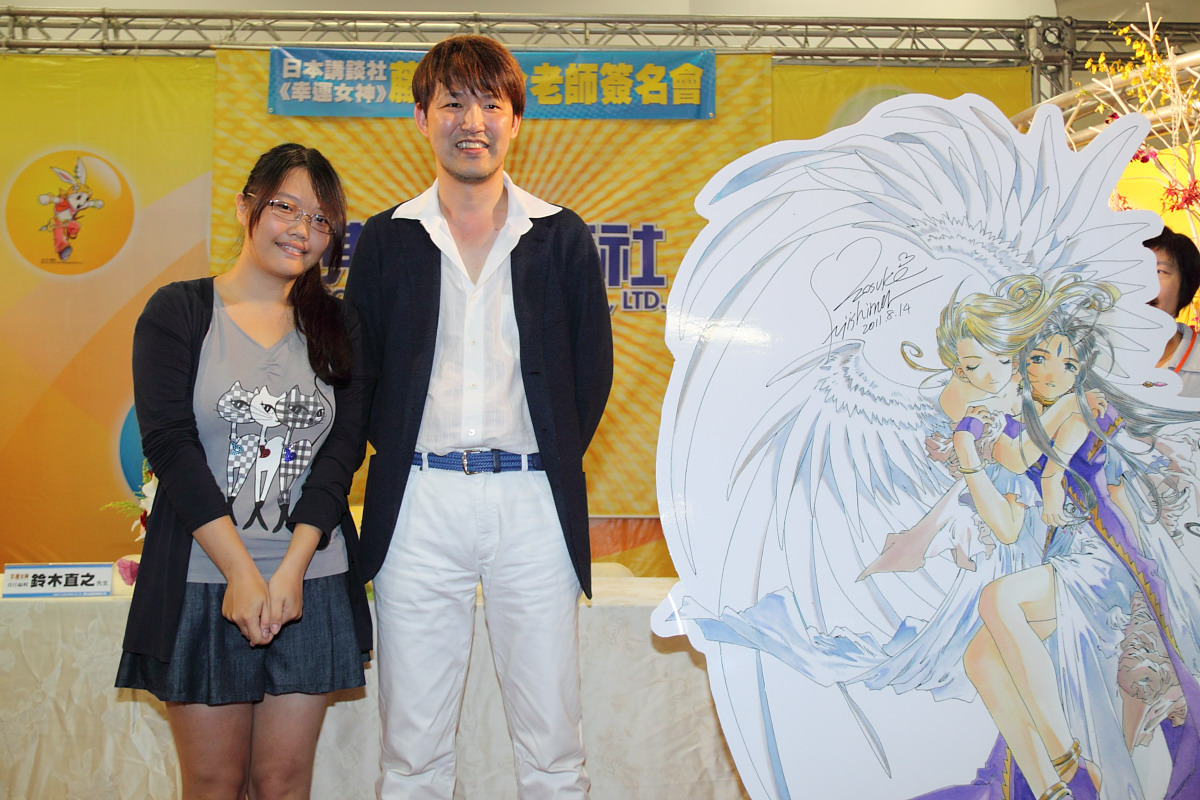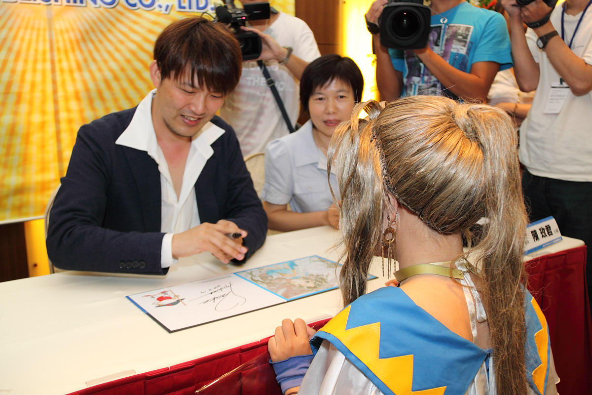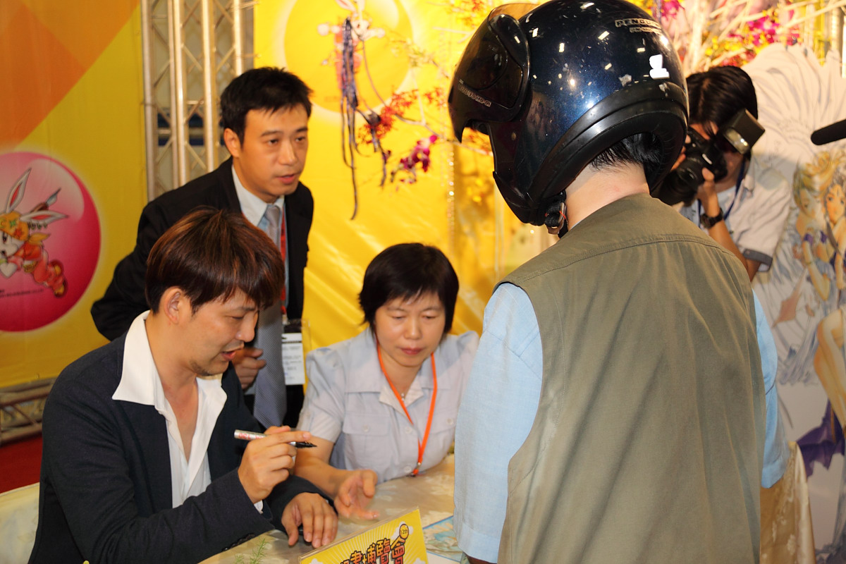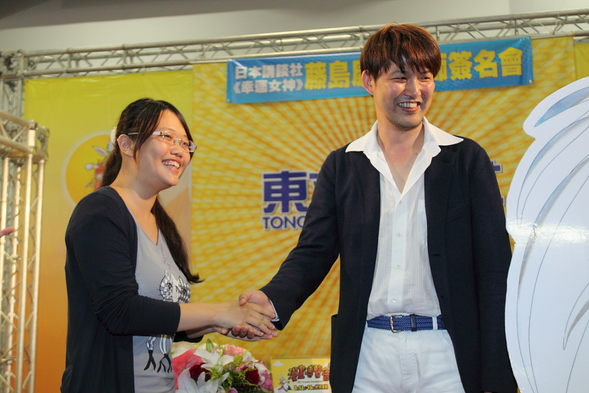 | 也有粉絲請當過《幸運女神》責任編輯的吉田昌平簽名 | 與編輯長熱情握手留念 |