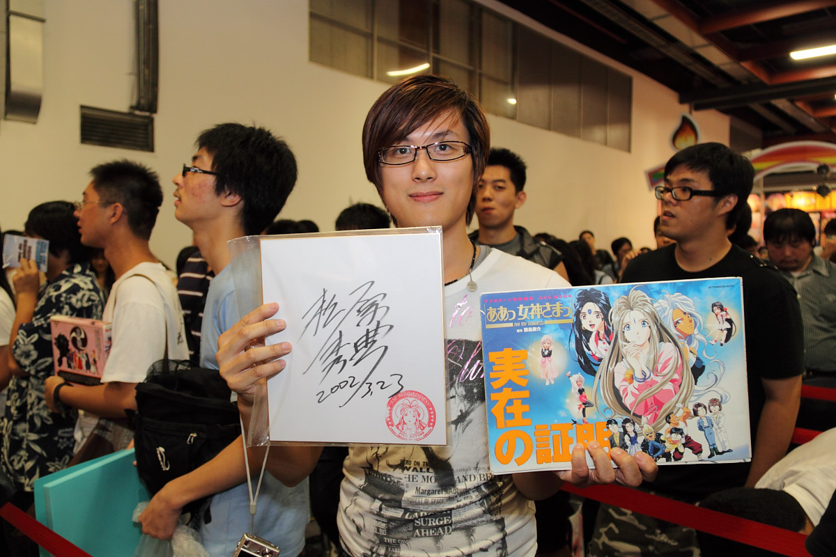 ![這位來自香港的安全帽仁兄拔得頭籌]() | ![還特地替他簽動畫 DVD 紙盒]() |