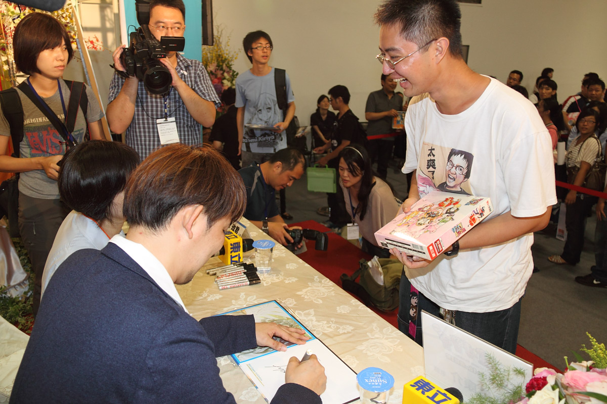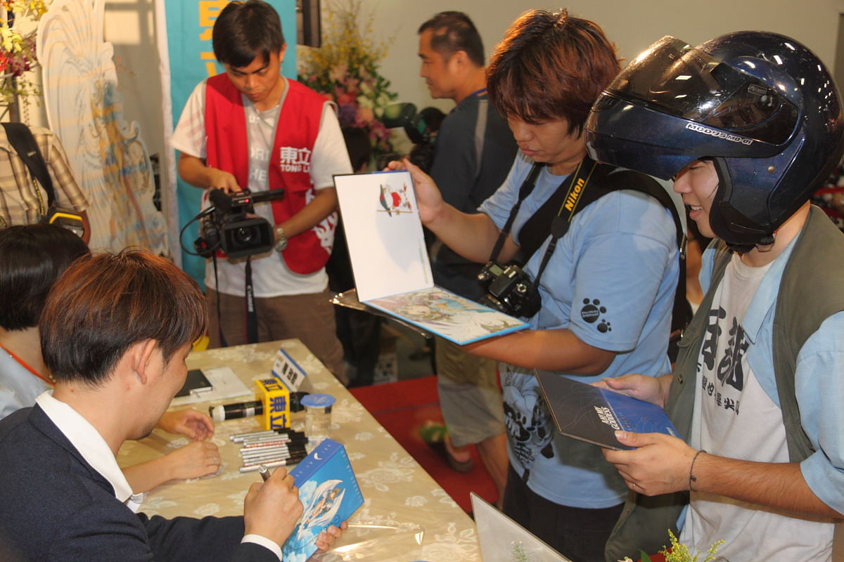這次漫博會的簽名會是藤島康介首次訪台,隨行的還包括「月刊 Afternoon」編輯長吉田昌平與《