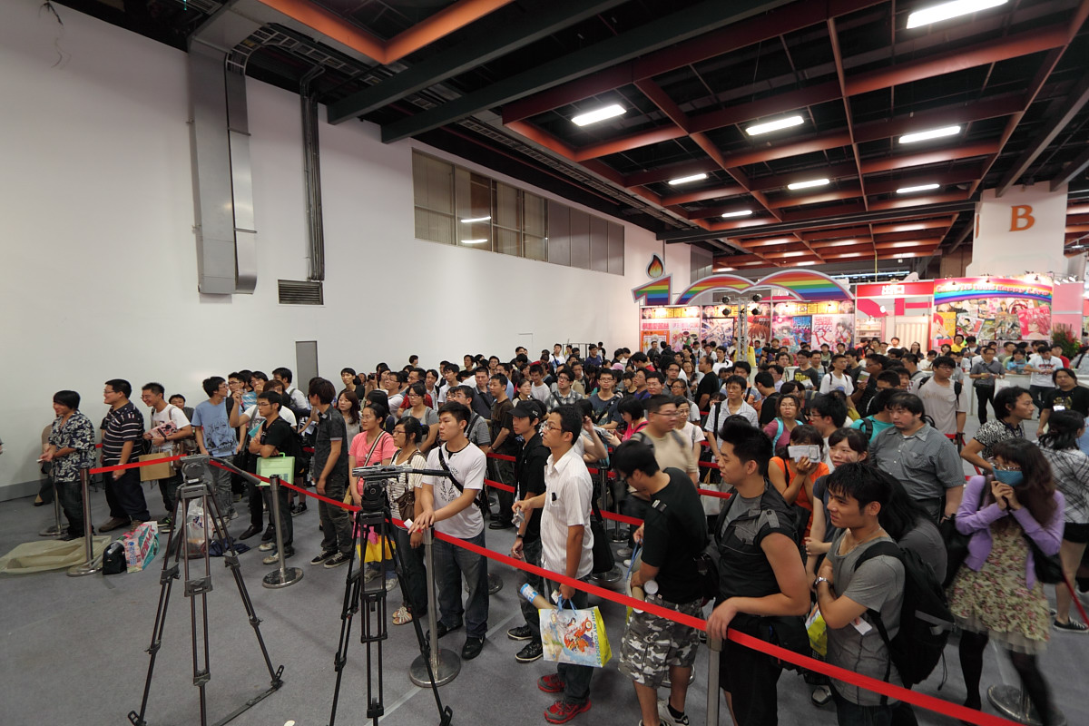休息片刻後,藤島康介隨即來到漫博會現場展開本次行程重頭戲的簽名會,活動還沒開始現場一如預期般地擠滿了大批等候簽名的粉絲,場地外側也擠滿了沒取得簽名資格但想一窺藤島康介廬山真面目的粉絲,而且年齡層分布相當廣泛,充分展現連載 23 年人氣不衰的一線漫畫家實力。
