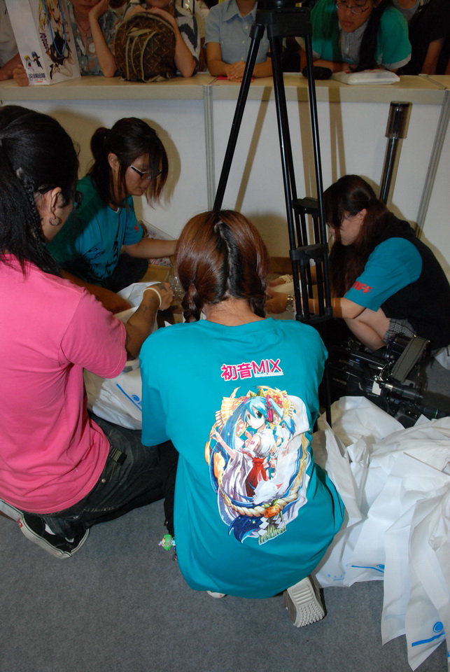簽名會上,除了工作人員之外,也有許多熱情的粉絲身著初音未來的藍綠色 T 恤,大家並準備了各式各樣的蔥、特製了初音帽子、甚至親自 Cos 初音到現場,讓 KEI 老師開心不已。此外,還有從巴西與紐西蘭回來的讀者,就是想要見老師一面,最後甚至有讀者集體跪坐求婚,讓 KEI 老師留下非常深刻的印象。
