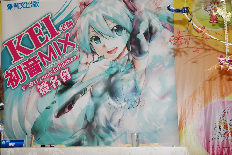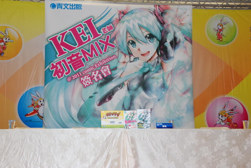 為高人氣虛擬偶像「初音未來」進行人物設定的漫畫家 KEI,今(16)日受青文出版社之邀來台,並在今年度漫畫博覽會的最後一場時段中舉辦了簽名會活動。