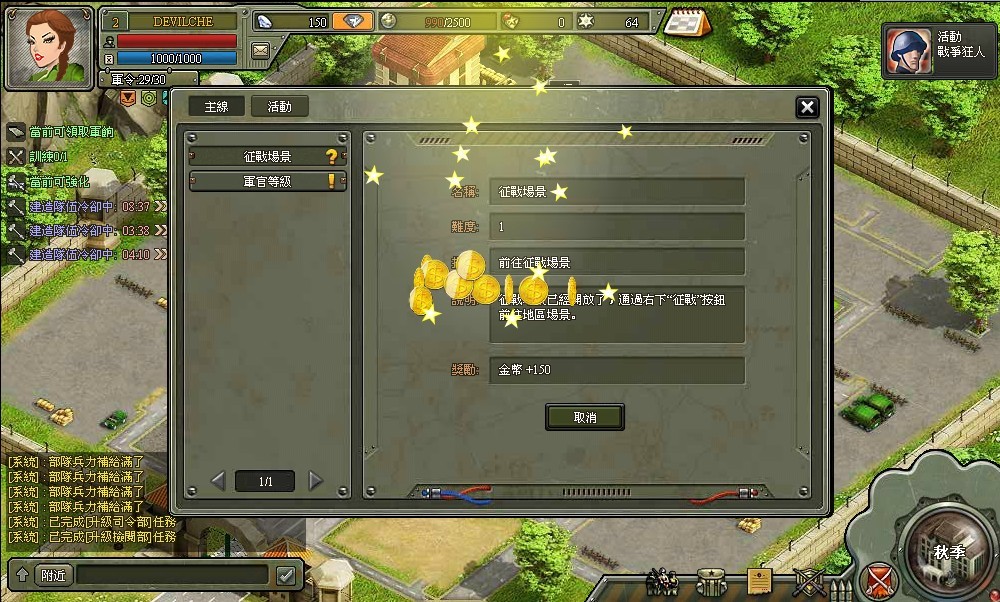 集團軍徽等級達到 10 級的軍團長可獲得 1000 鑽石