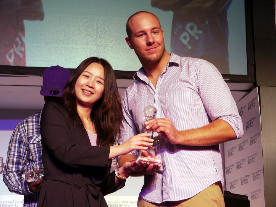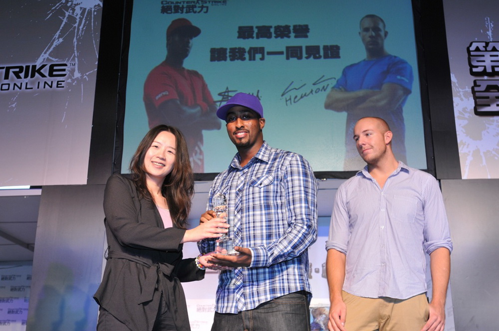 傳奇人物「HeatoN」和「SpawN」週六特地來台,獲頒「CSO名人堂」紀念獎盃,他們一登場台下就響起熱烈的歡迎掌聲。