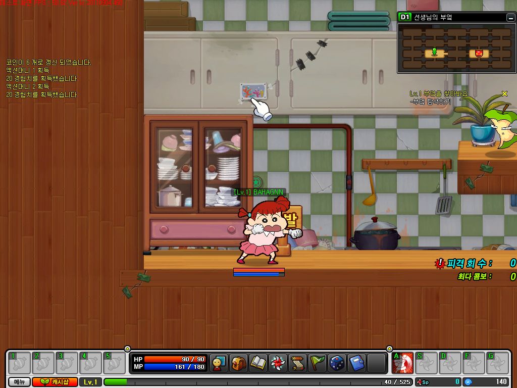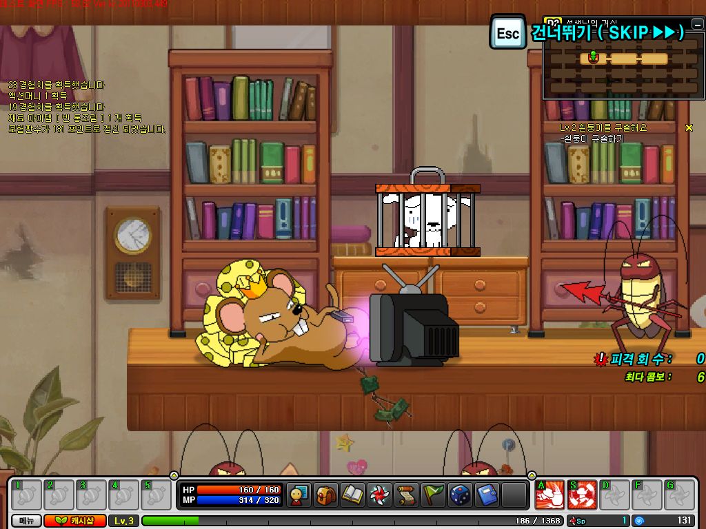 選好角色後系統會先進行新手教學,好讓玩家能更快了解遊戲的操作方式,像是利用→與←方向鍵前進,雙擊方向鍵跑步,↑鍵跳躍、↓鍵落下等,不過就在這時候小白被可惡的老鼠王抓走了,而且還把蘋果變成怪物來阻止玩家,玩家要使用 X 鍵攻擊、ASDFG 等鍵施放技能來消滅蘋果怪物,將蘋果擊倒後就順利完成新手教學了,但也因此觸發了解救小白事件。