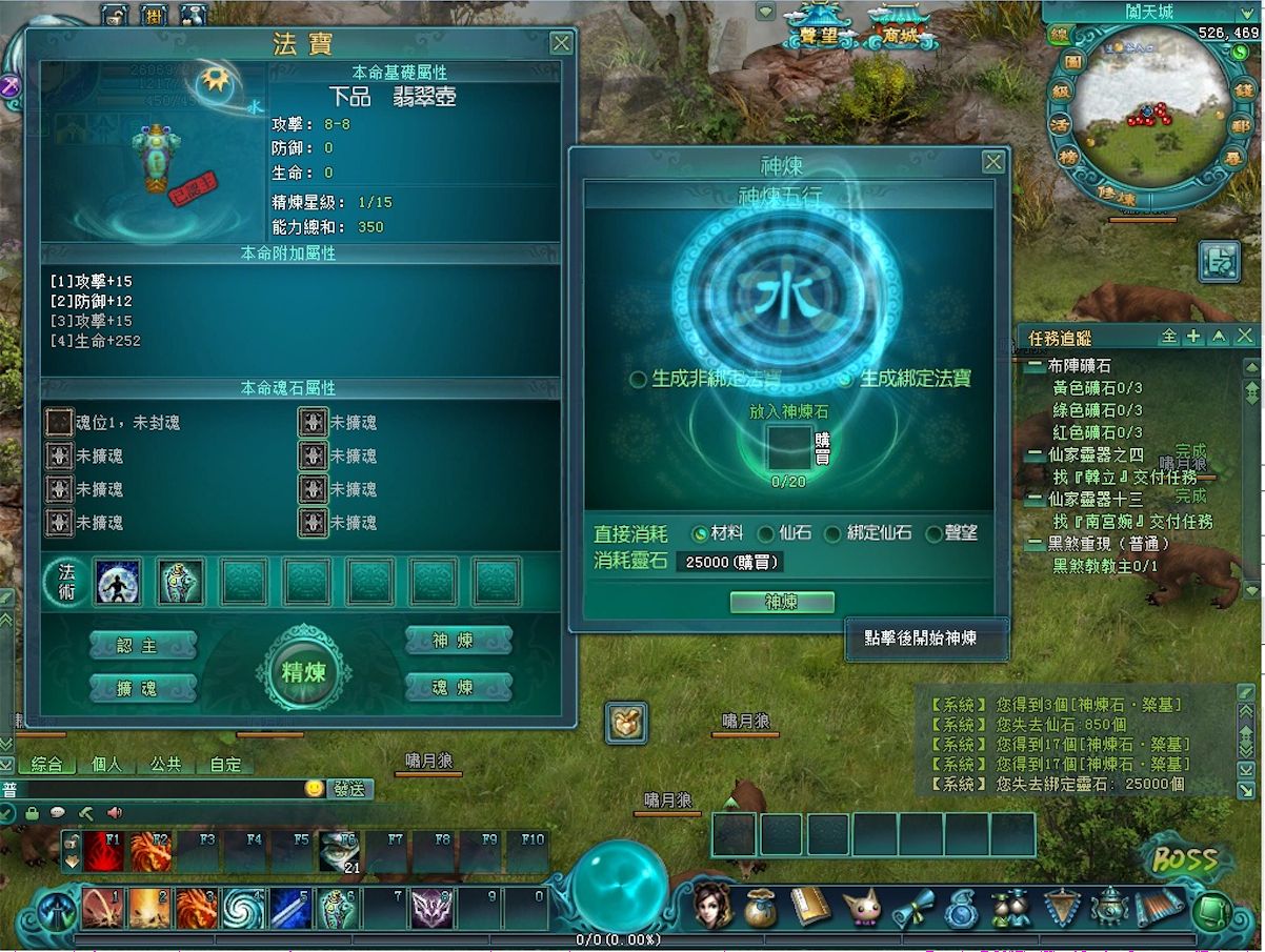 玩家若是想要獲取法寶的話,則需要一定數量的材料來進行打造,當然初期將會在主線任務中免費贈送給玩家一個初級法寶,讓玩家先行體驗法寶的威力。