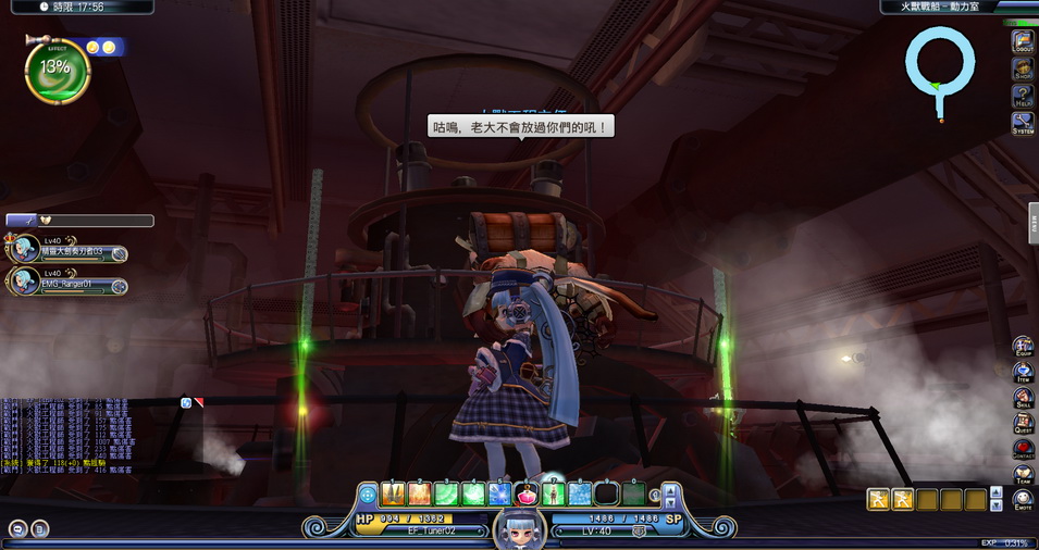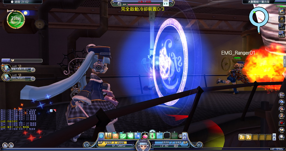 緊接著,角色就進入了戰船的動力室,要邊打倒火獸,邊把握機會啟動冷卻裝置,若是不夠快的話,火獸會跑來把我們啟動的冷卻裝置給關掉。