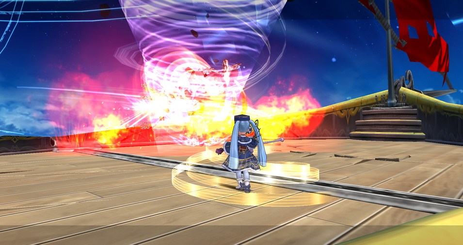 當角色與 NPC 船長沙貝克特談話、選擇傳送後,就來到第一階段的舞台。一開始要擊倒入侵的火獸,等到擊敗完指定數量後,就會進入動畫、引導入下一個階段。