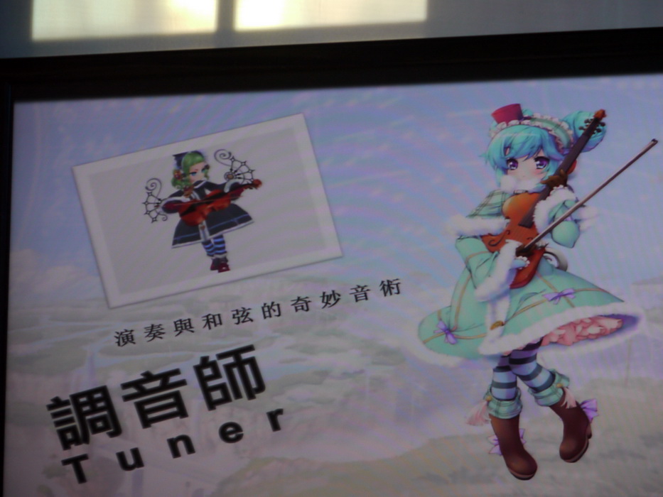 他指出,遊戲最有特色的職業就是調音師,此職業主要是利用音素演奏不同魔法,運用借助地、水、火、風等自然元素而使出攻擊的「調音術」,為擔任重要的後方補給支援角色。調音師主要分為演奏術、和弦術兩種走向,前者必須花長時間蒐集音素,以便演奏曲子內容後完成魔法施展,至於和弦術放出魔法的時間較短、可以快速施法。