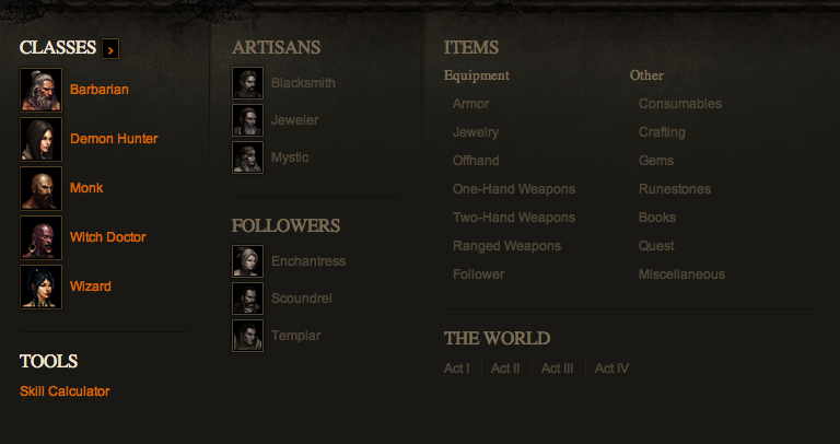 暗黑破壞神 3》的官網,並新增了五大職業的特色/技能介紹,其中包括了各職業的詳細技能說明頁面,以及裝備各種不同符石的特效效果介紹。值得注意的是,Blizzard 同時也在今日開放了技能模擬器,供玩家自由嘗試自己喜歡的角色技能點法。