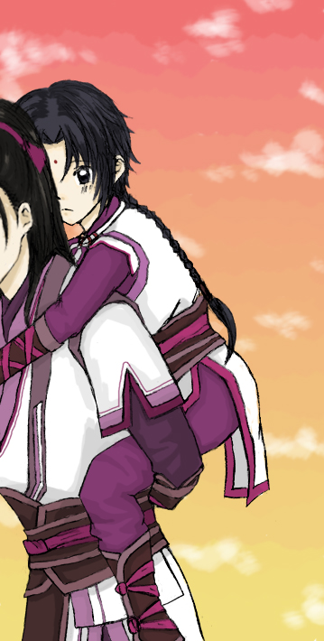 作品說明:晚霞風起,陵越師兄恐怕是揹著扭傷了腳的蘇蘇回家囉!^^